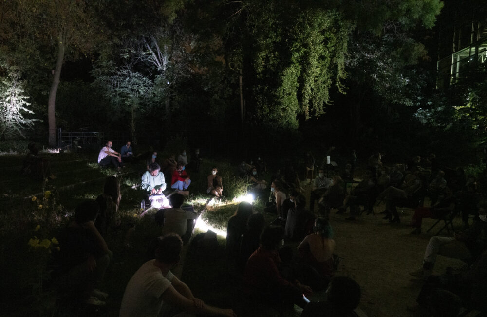 La metteuse en scène brésilienne Christiane Jatahy aime brouiller les frontières entre réalité et fiction. Pour cette Soirée Nomade, elle crée un parcours sonore inspiré de La Chute du ciel, Paroles d’un chaman Yanomami, ouvrage de référence de Davi Kopenawa – porte-parole des Yanomami du Brésil – et de l’anthropologue Bruce Albert. Muni de casques, le public déambule dans l’exposition Claudia Andujar, La Lutte Yanomami. Lectures de l’ouvrage, bande-son et instructions entraînent le public dans les salles, créant ainsi une performance invisible qui se conclut par un live dans le jardin. Mettez votre casque et laissez-vous guider !